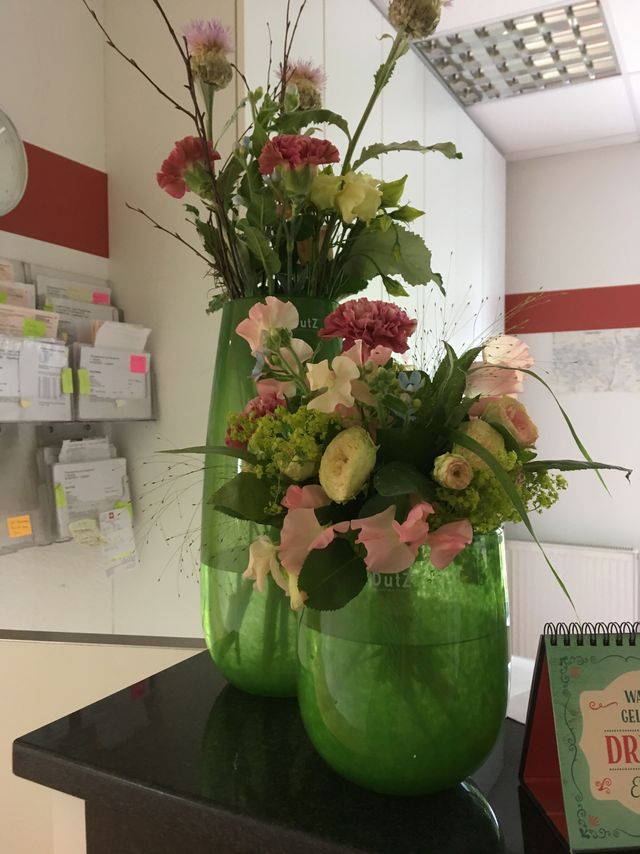 Frische Blumen am Empfang, in der Praxis, im Büro verändern die erste Begegnung mit Kunden und Kollegen positiv und schaffen so eine angenehme Arbeitsatmosphäre.